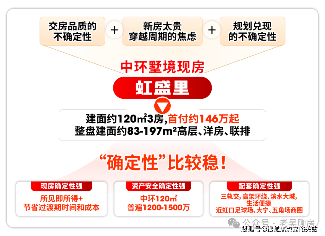 虹口虹盛里,便是当下“确定性”尤为靠谱的选择——当下首付最低15%,首付仅约146万起就能在中环旁入手建面约120㎡的3房墅境现房!