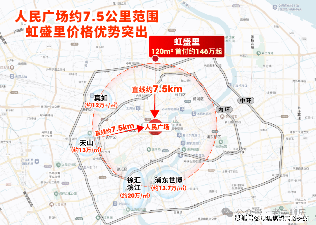 项目直线公里,在真如、徐汇滨江、天山、世博等同等区位板块中,是价格更划算的新房选择。