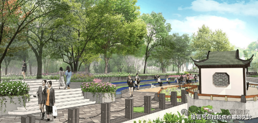 值得一提,项目南侧紧邻约1公里走马塘滨水黄金轴线,这里不只是一条滨水步道,更串联起江湾源、奎星阁、蟠曲舫等文化空间;而正在推进的走马塘生态驳岸改造,正让滨水生活重焕自然活力与人文温度。