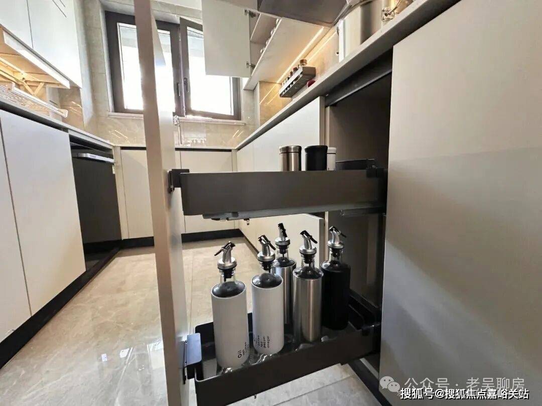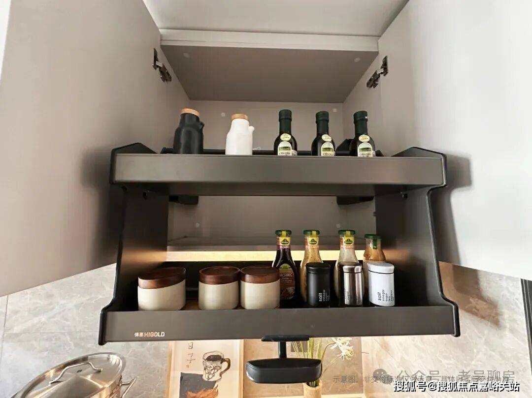 ,实现 “一拉到位、一目了然”,可满足6-8人份碗筷收纳需求,吊柜搭配升降拉篮解决高处取物难题。同时细节上融入人体工学设计,增设转角拉篮、下拉沥水篮等实用配置,同时将插座左移,预留更灵活的操作空间。