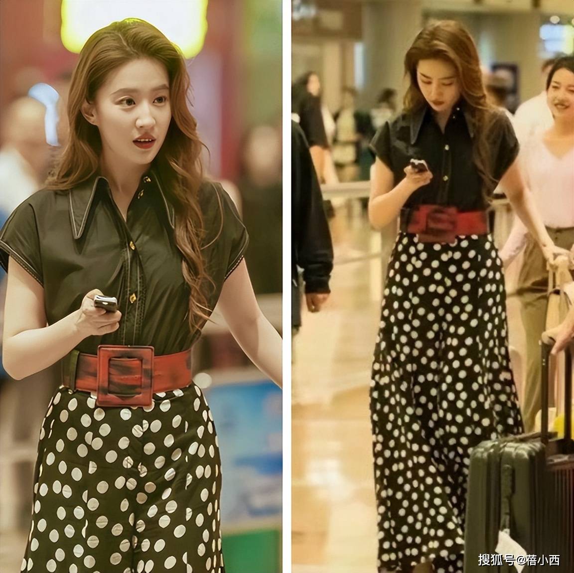 此外,刘亦菲穿的这条淡黄色的抹胸连衣裙,材质采用轻盈的薄纱,让整个人看起来如同仙女下凡,温柔又透气,尽显年轻活力。另一款黑白波点的半身裙搭配黑色衬衫,复古感十足,尤其是腰间点缀的红色腰带,让整体造型更具时尚感,也突出了复古魅力。